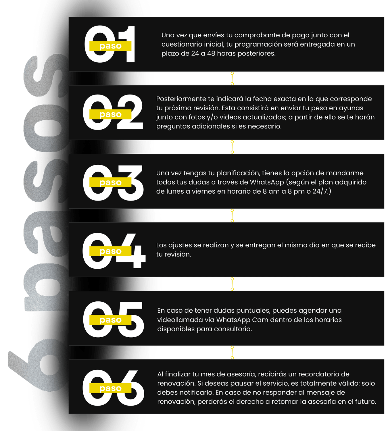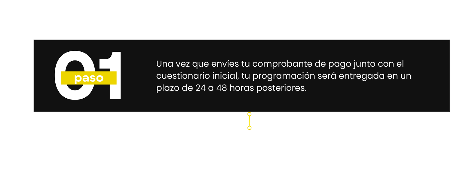 Después de la consulta o en caso de competidores la evaluación inicial, obtendrás tu planificación en un lapso de 24-48 horas.